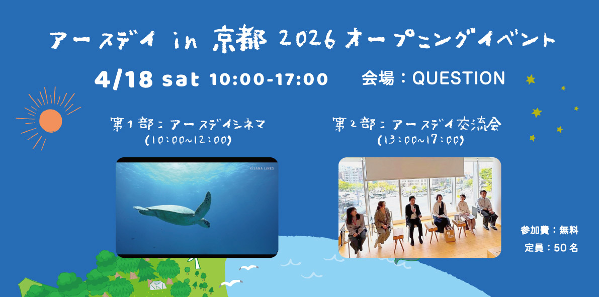 2026年のアースデイ月間の初日を飾る「アースデイオープニングイベント」を開催します。第1部は「アースデイシネマ『地球とつながる瞬間(とき)』と題した上映会、第2部は「アースデイ交流会」として、アースデイに関わるすべての人で集いたいと思います。どなた様もお気軽にご参加ください!