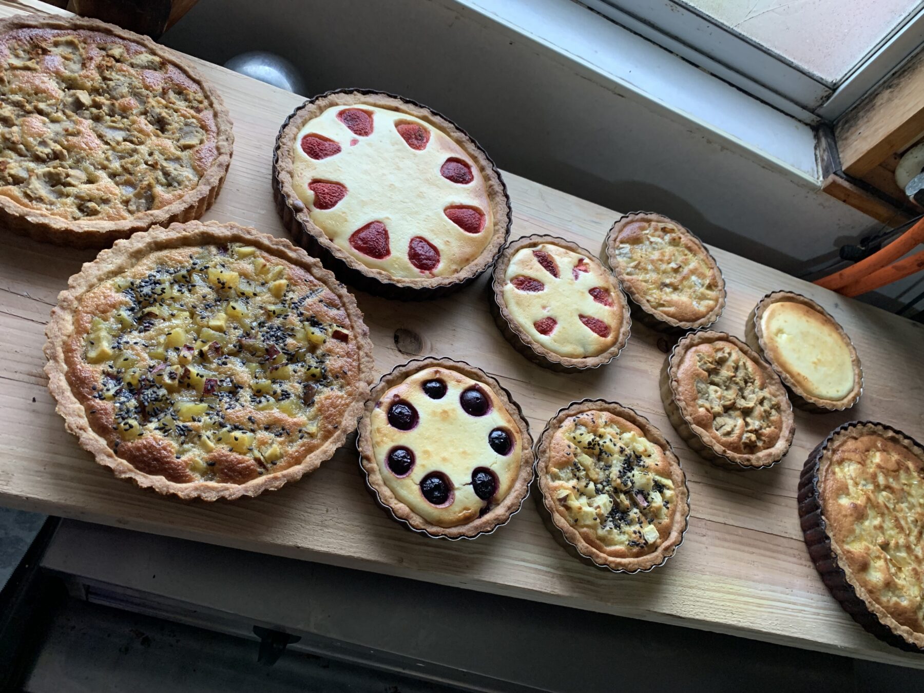 綾部産の小麦、旬の食材を使ったタルト。 ブルーベリー、マルベリー、柿、柚子、桜の塩漬け、さつまいもなど。 アーモンドクリームベースと、チーズケーキベースです。 綾部産丹波栗を使った栗のあんぱん。 ヴィーガンのガトーショコラとマフィン。 アレルギーのある方やヴィーガン志向の方に安心してたべていただけます。 17日の10時から16時の出店になります。