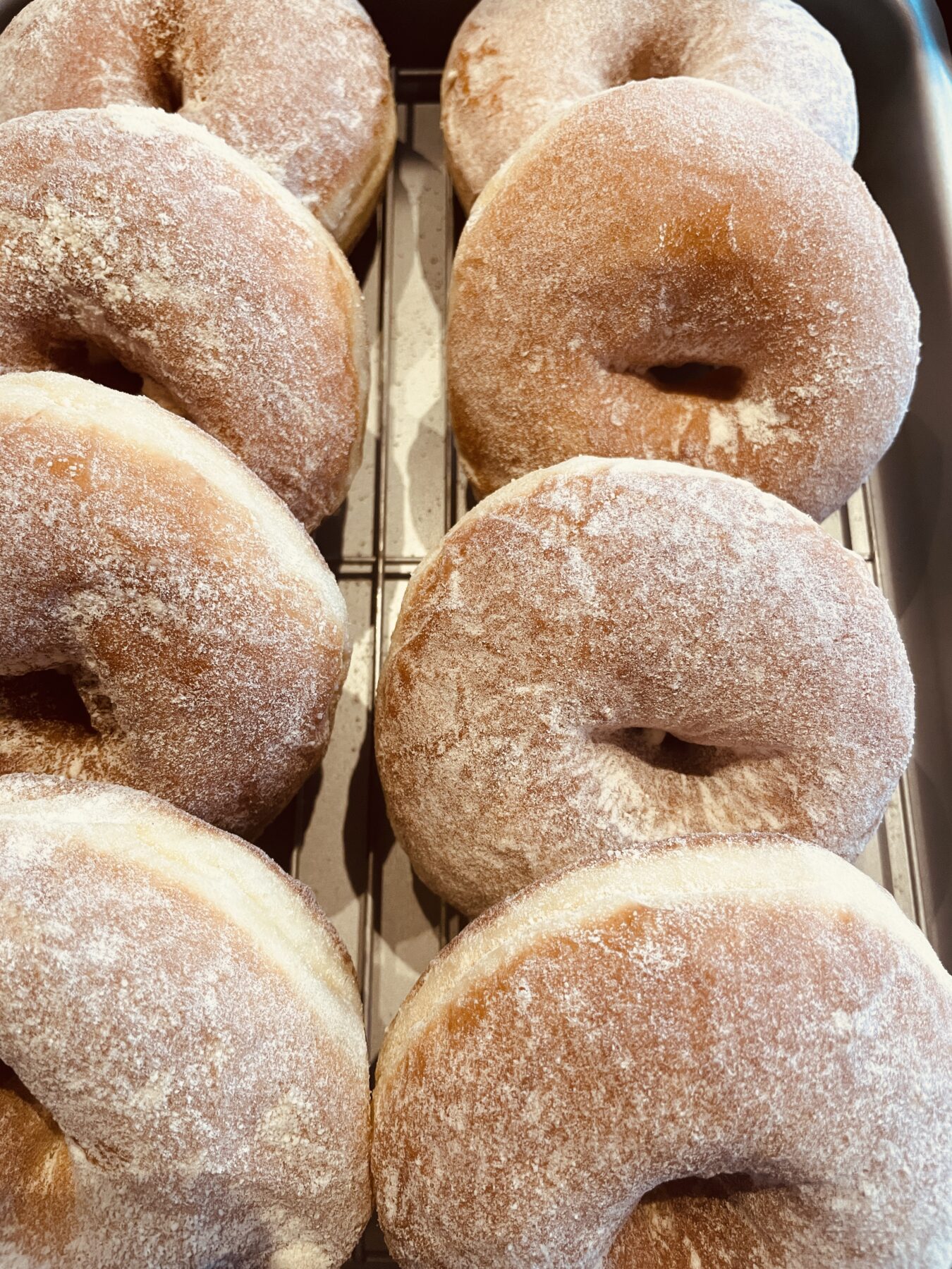 大阪天満のお店とイベント出店で出来立てのふわふわドーナツとドリンクをご提供しています。 ドーナツの素材は安心して食べていただけるように、北海道産の有機小麦と有機全粒粉をブレンドし、小麦の香りを楽しめる生地になっています。出来立てのドーナツはふわっふわで、トッピングのお砂糖(甜菜糖)やグレーズにぴったりです。 揚げ油には、酸化しにくいトランス脂肪酸フリーの有機油を使用しています。 ぜひ出来立てのドーナツをお愉しみください。