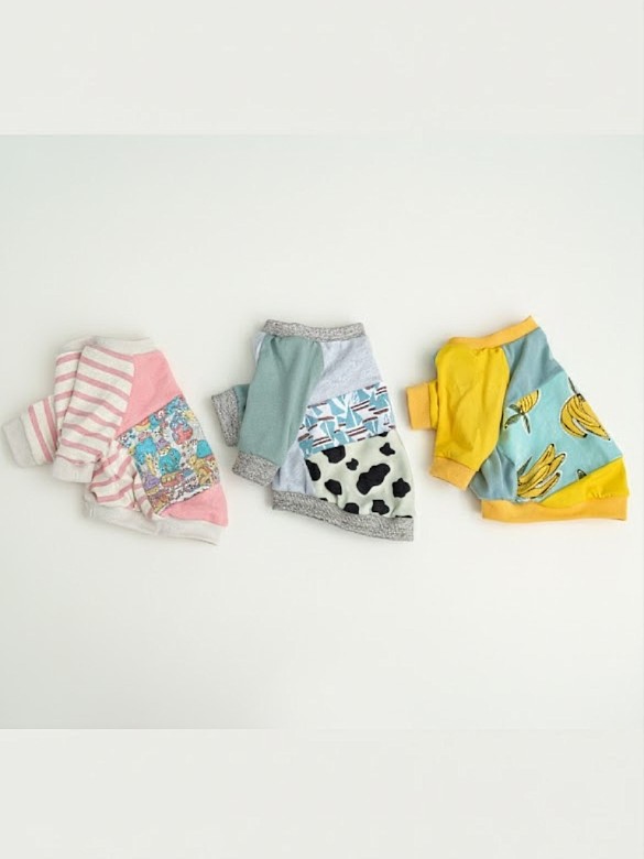 同じ柄合わせはほとんど作らず、それぞれ異なる表情を持つ服づくりを心がけています。 素材は、子どもにも犬にもやさしい天然素材を中心に使用しています。