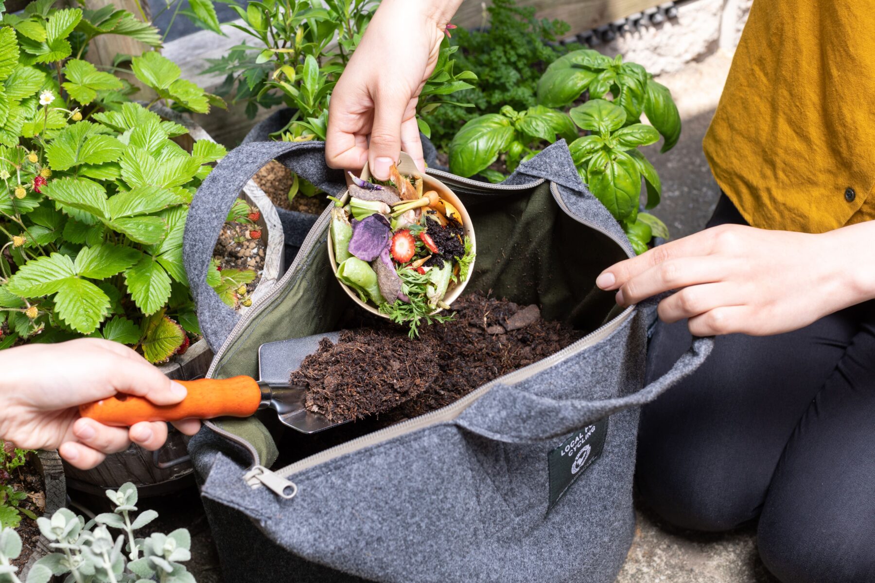 ごみカフェKYOTOは、生ごみをキッカケに繋がるコミュニティです。LFCコンポストを使って生ごみを堆肥化し、生ごみを削減。使い道のない堆肥を回収し、必要な農家さんへ贈ったり公園の緑化に活用しています。