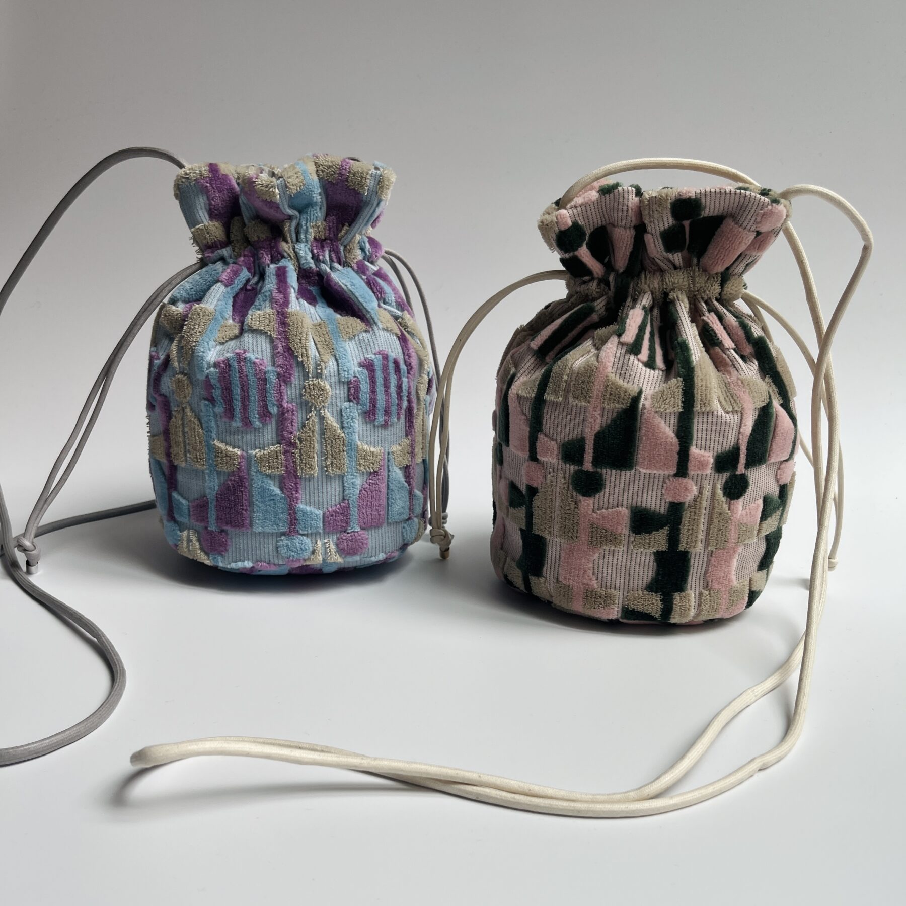 はじめまして 彦根市を拠点に活動しているcoccoleです 和歌山県で織られている金華山生地で 巾着バッグとポーチを製作しています ポコポコとした絨毯のような織物 何といっても可愛い色合い! 柄や色合いが違えば 雰囲気も様々 是非、ご覧いただけると嬉しいです