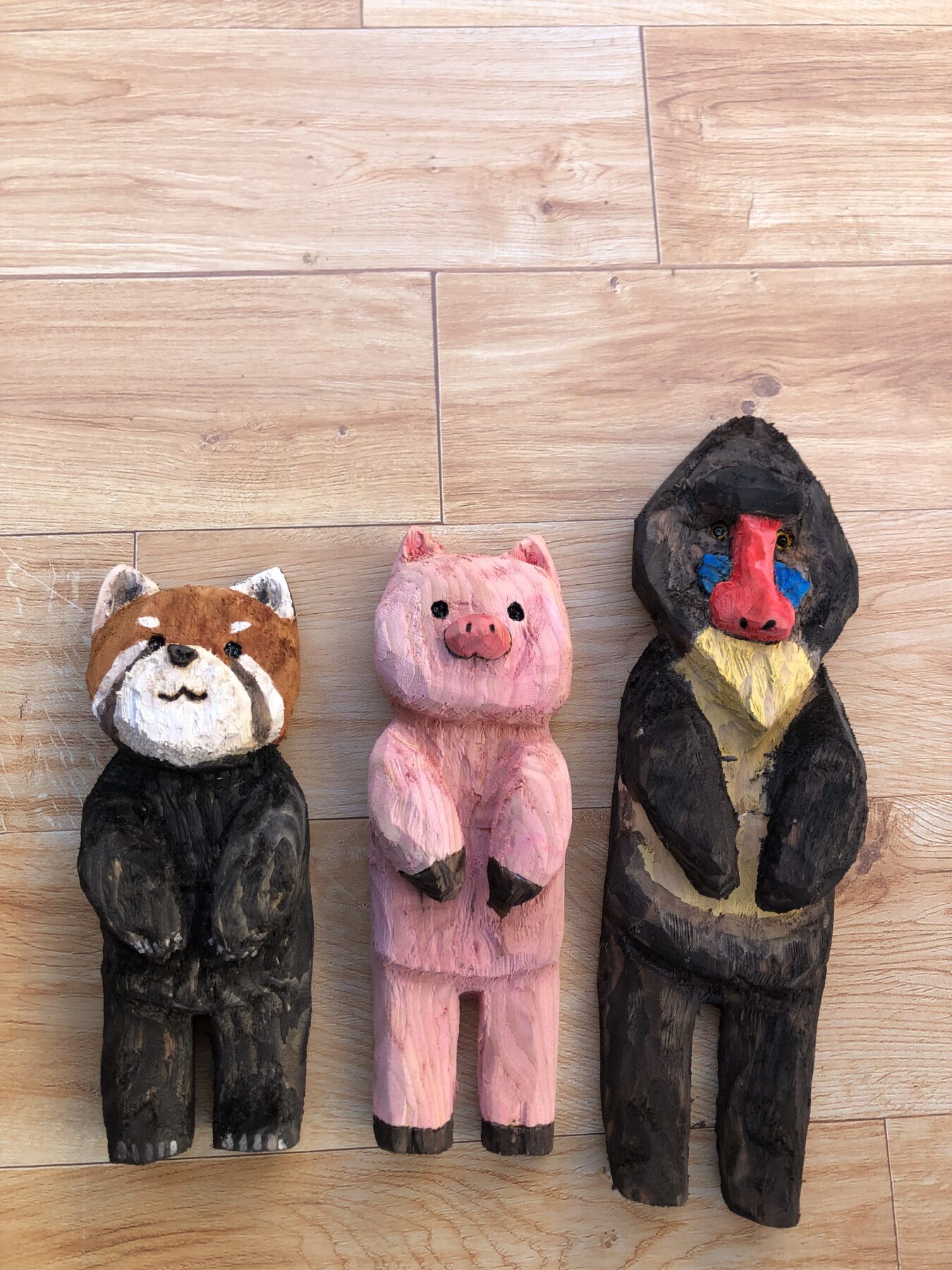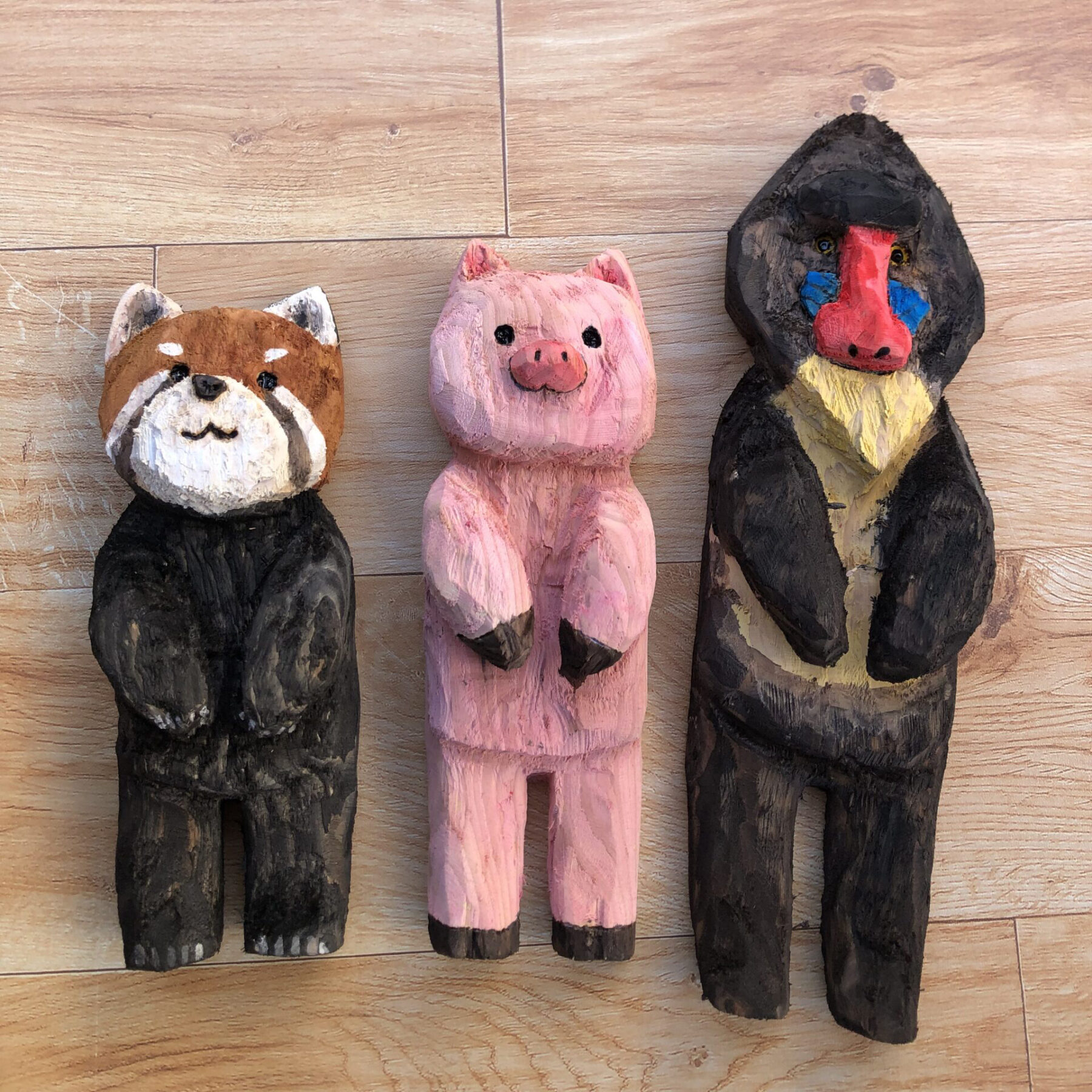 自分で伐採した杉や桧の木で彫った木彫りの生き物達を販売したいと思います。