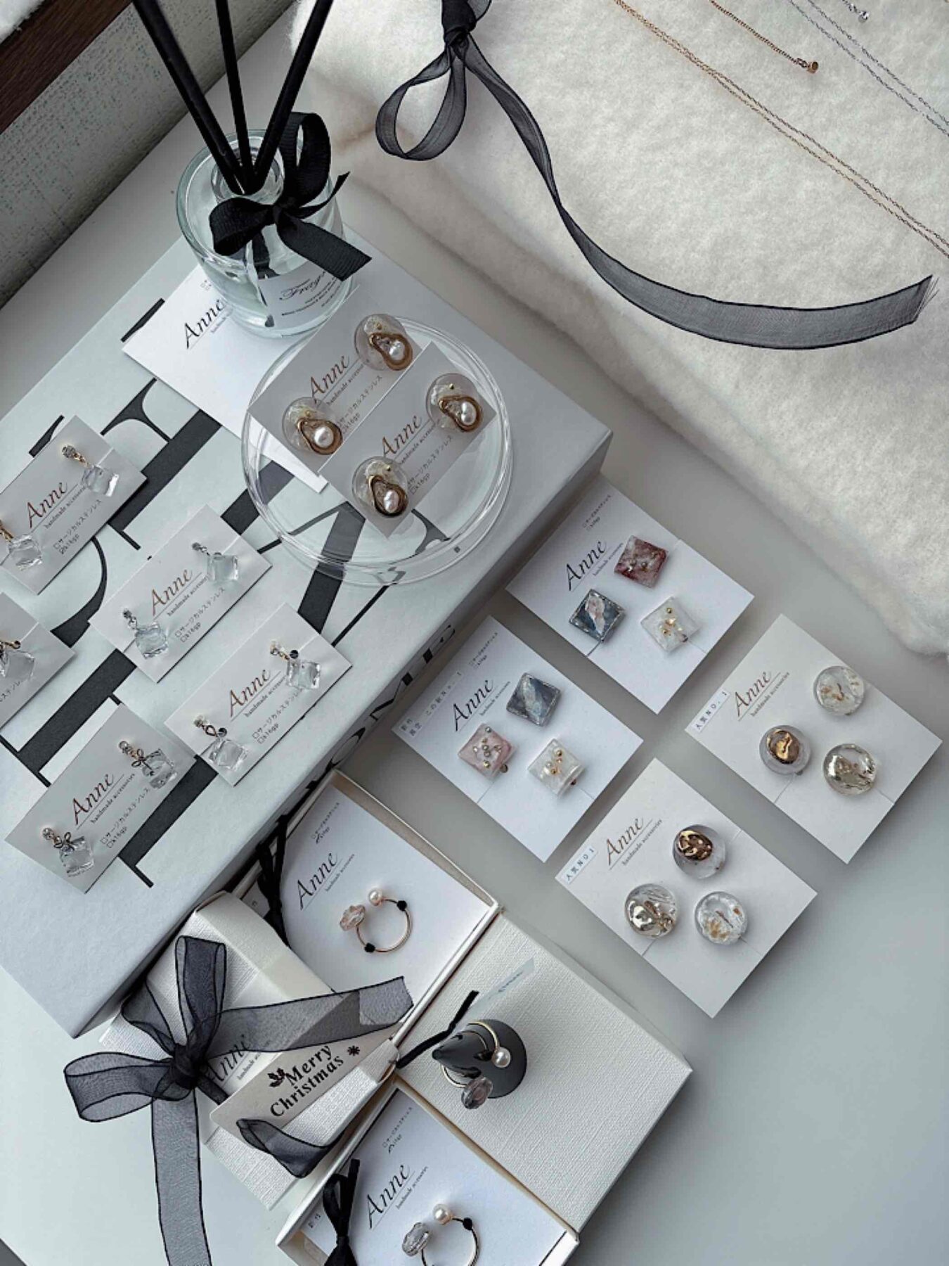 Anne レジンと天然石を組み合わせたシンプルでさりげないアクセサリーを販売してします。¥3500〜¥5000。