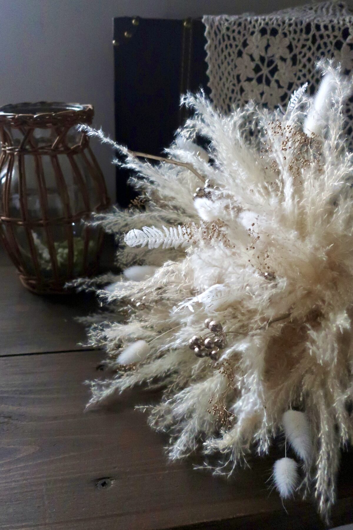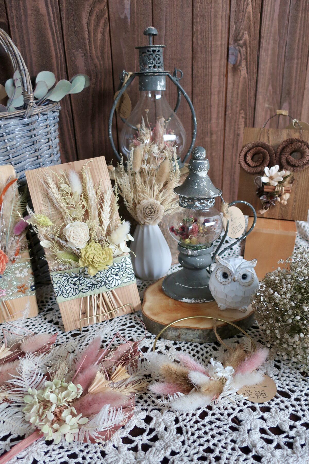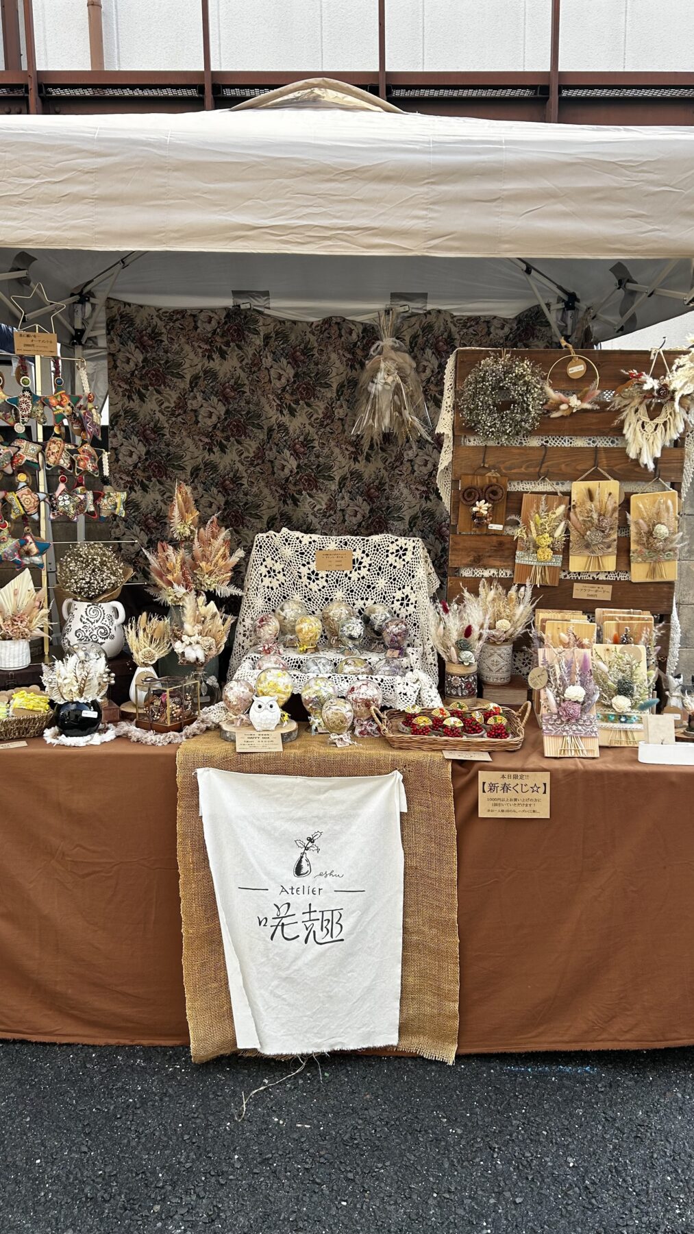 植物が持つ自然な表情や季節感を大切にし、見ているだけで気分が楽しくなるデザインを心がけています。自然素材を無駄なく使い、Atelier 咲趣らしい、飾りやすく暮らしに寄り添う作品づくりを大切にしています。