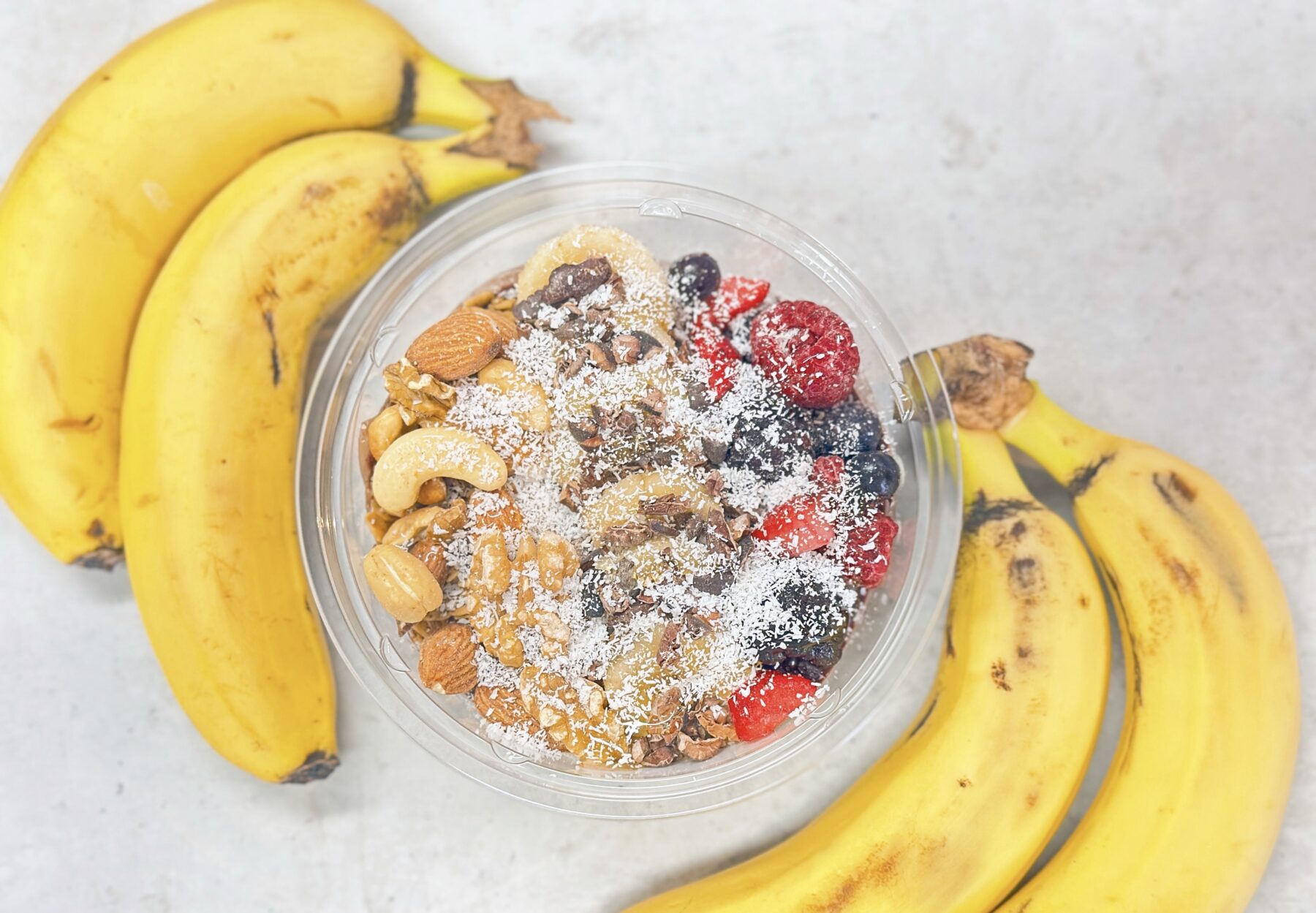 『京都はんなりばなな』は無農薬で栽培された京都産のバナナです。無農薬のため、皮ごと食べられるバナナなので、スムージーやジェラートは皮ごと使用しています。 アサイーボウルもオーガニックのアサイーを使用しています。