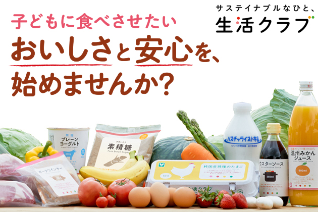 生活クラブは国産、無添加、減農薬など、こだわりの安心食材を宅配している生協です 生活することは消費する事です。 ”なにを”、”どのように”消費するか、という選択は、そのまま、「どんな未来にしたいか」「次の世代へ何を手渡したいか」へと繋がっていきます。