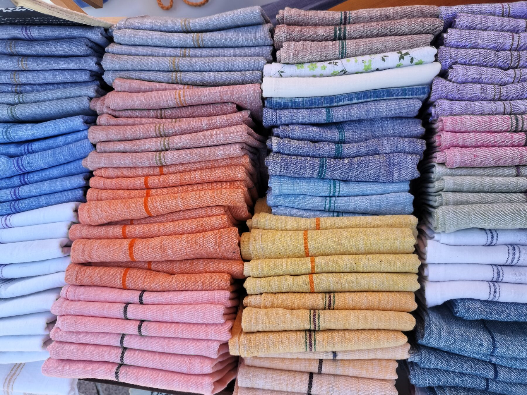 khadi(インドの手紡ぎ・手織りの布)やMatka Silk(野蚕シルク)による手作り衣服。インドガラスビーズ。ココナッツボタン。トゥルシーティー(ティーバッグ)。ウッドフリー和紙。ステンレス食器など。