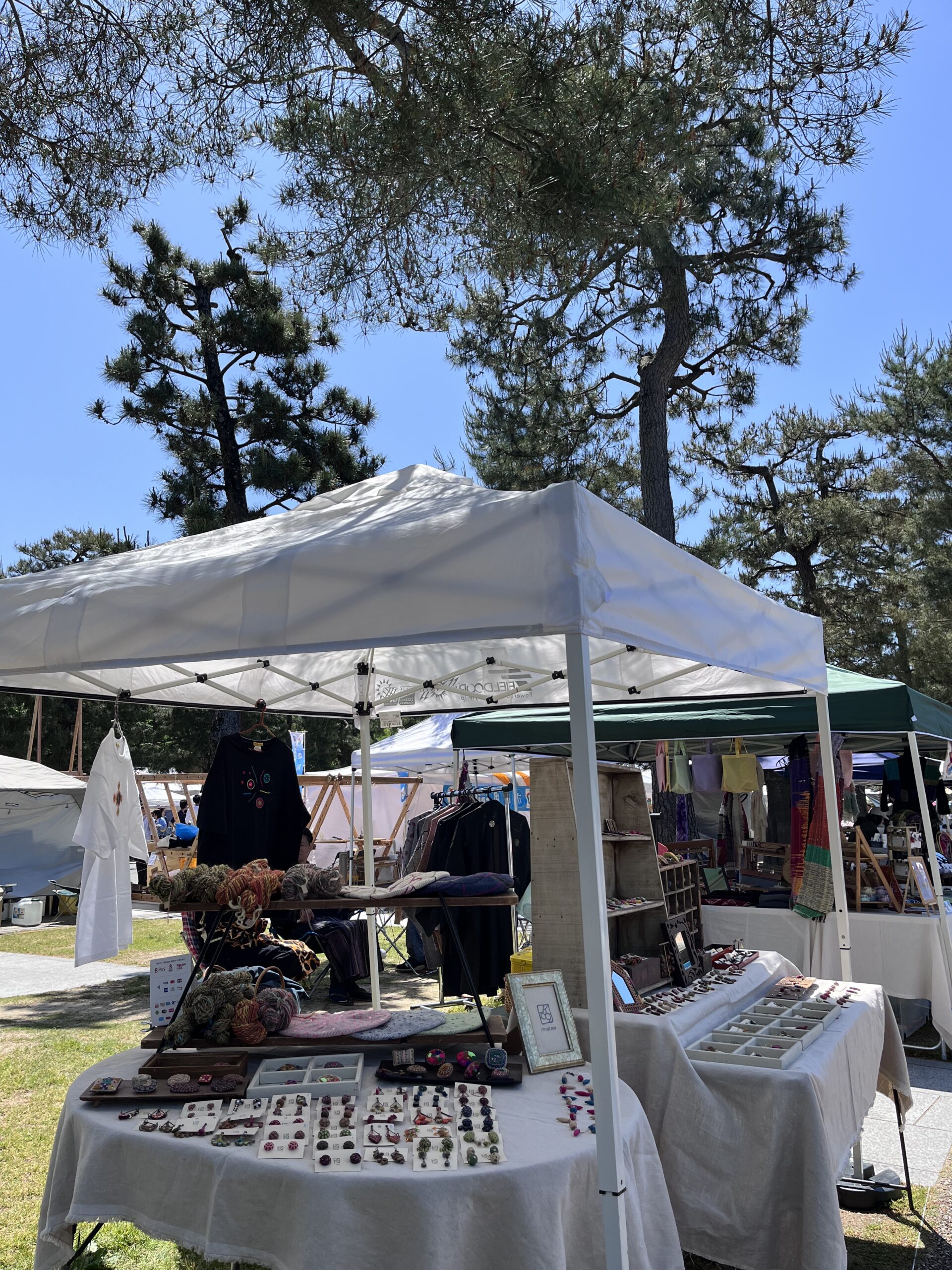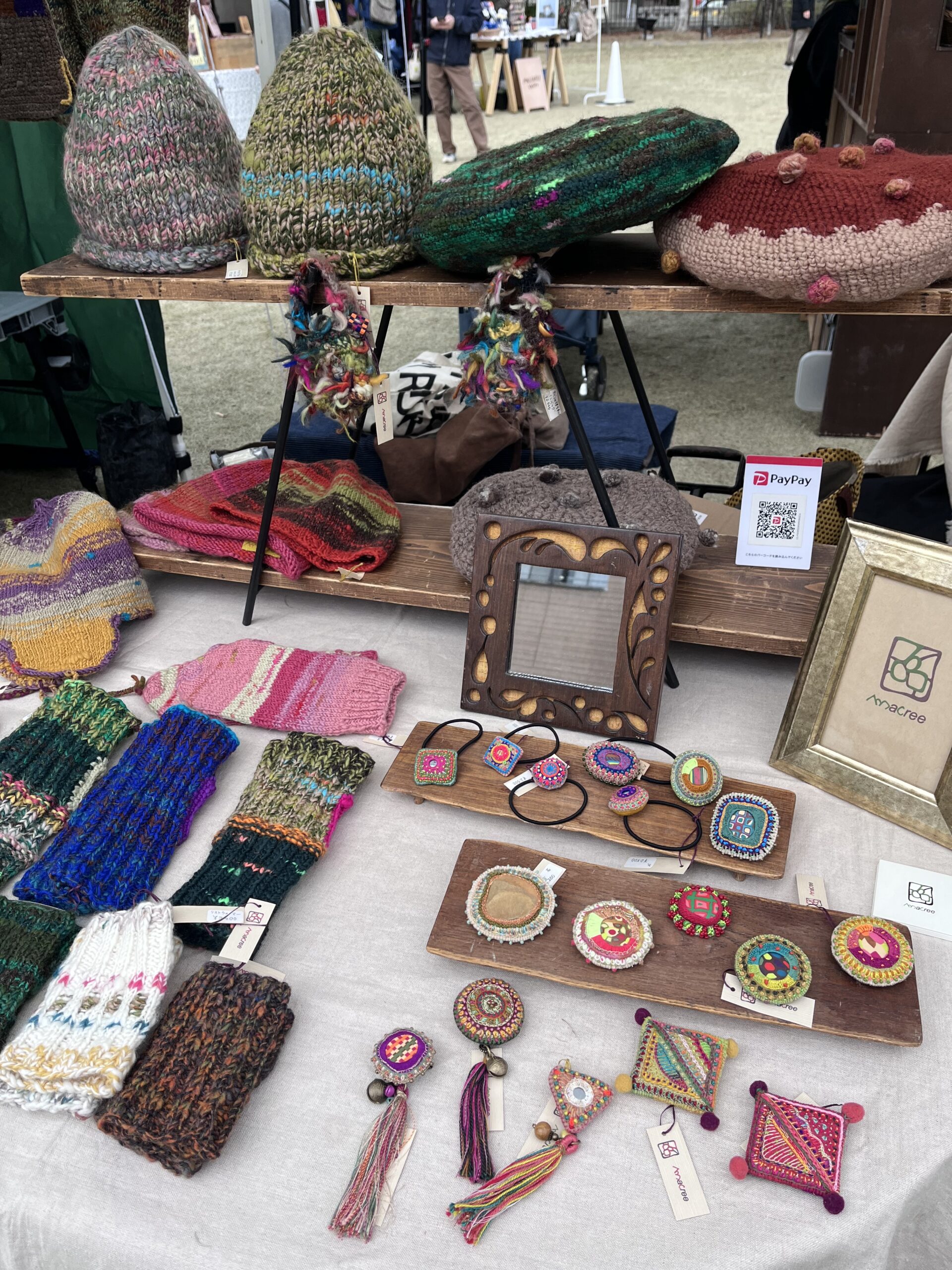 マクレーと申します。(5月には暑いのですが)羊毛を手紡ぎ手編みしたニット、ポリマークレイや刺繍のアクセサリーを販売しています。どちらも長く使っていただきたい思いが強くて数年前のものでも修理やリメイクを承っております。可愛いのはもちろん、ながく使い続けたいと思ってもらえるようなものづくりを目指しています。