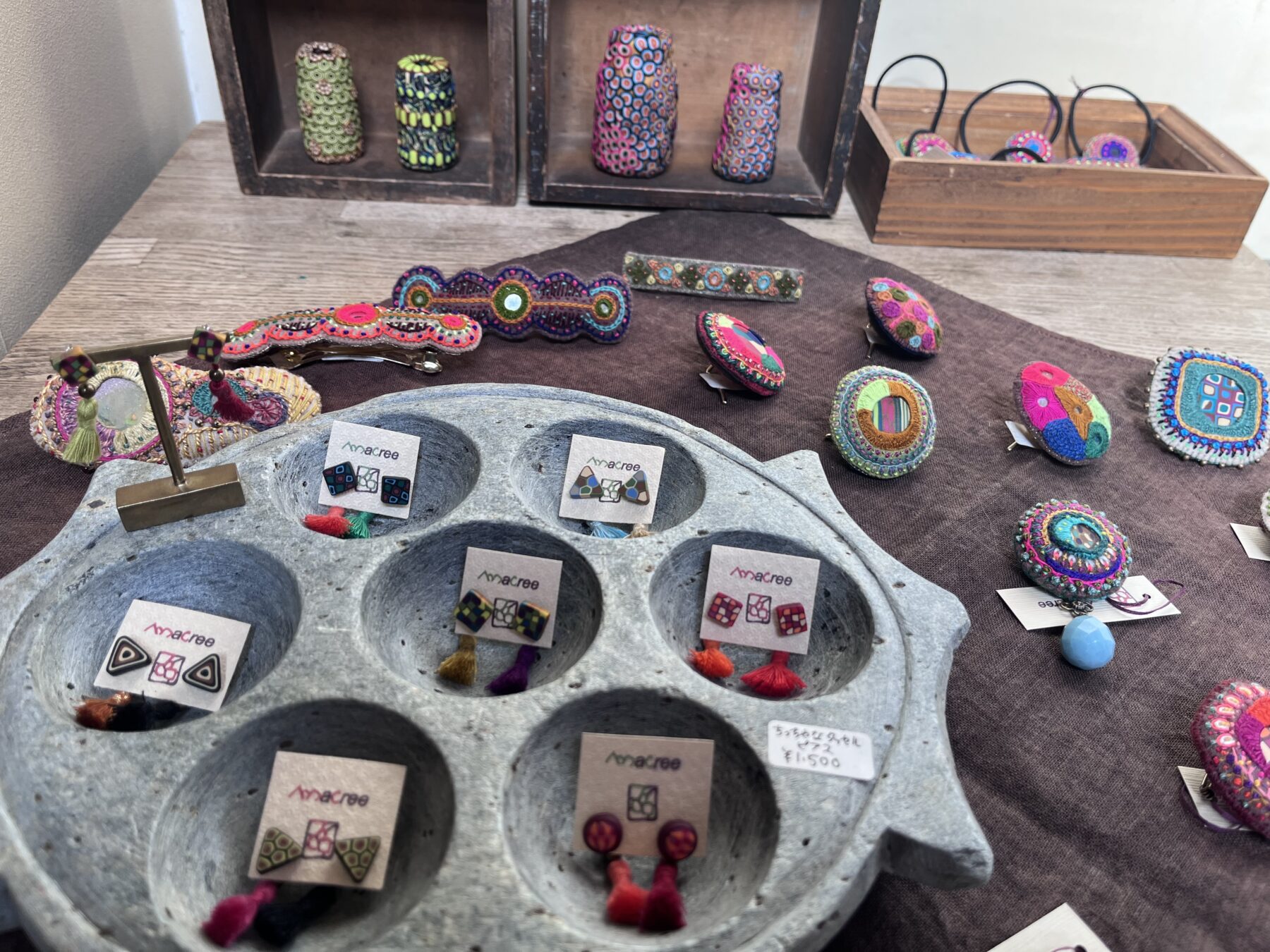 是非じっくりと手にとってご覧いただきたいです。どれが似合うか一緒に考えたり、つくる工程などもお話しながら楽しく過ごしていただけたらと思っています。