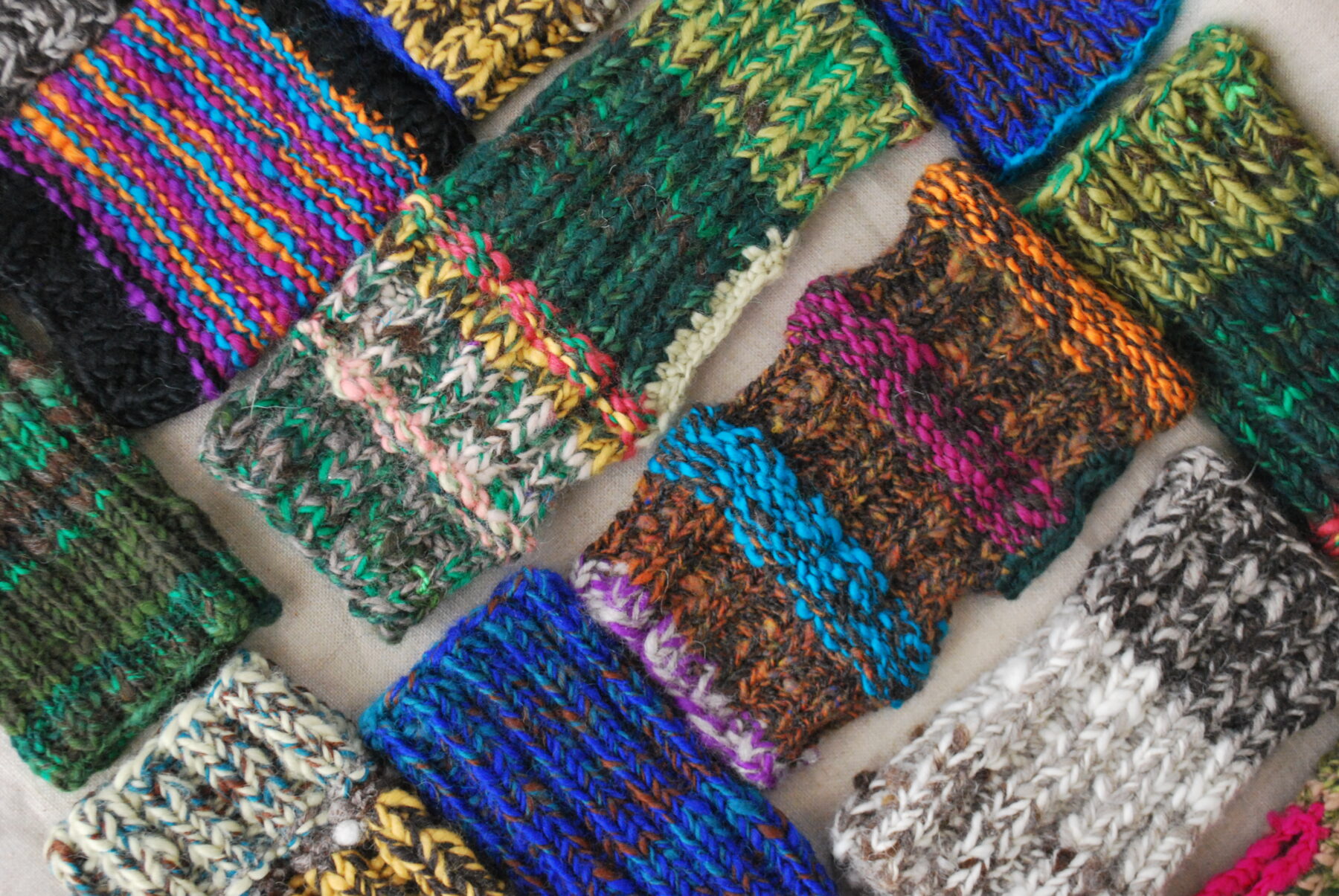 手紡ぎ手編みのニット小物(羊毛)、ポリマークレイや刺繍のアクセサリー。あと、スピンドルで糸紡ぎをする簡単なワークショップを考えています。
