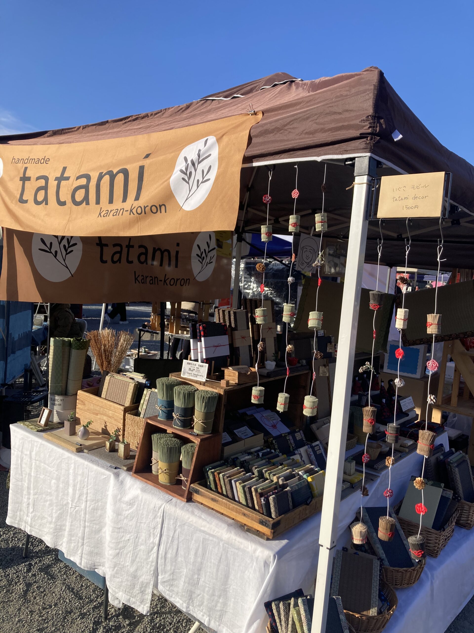 karan-koronは雑貨好きと畳屋で作ったミニ畳などのお店です。畳屋で使わなくなった畳表(畳ゴザ)を使っていぐさの消臭剤を作ったり、いぐさのモビールも作っています。畳ヘリで雛人形やかぶとも好評いただいています。