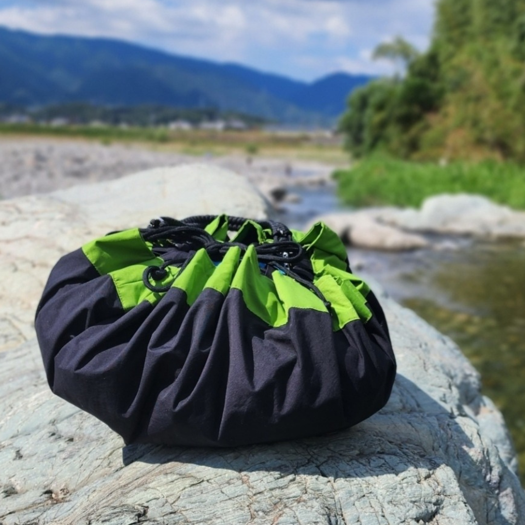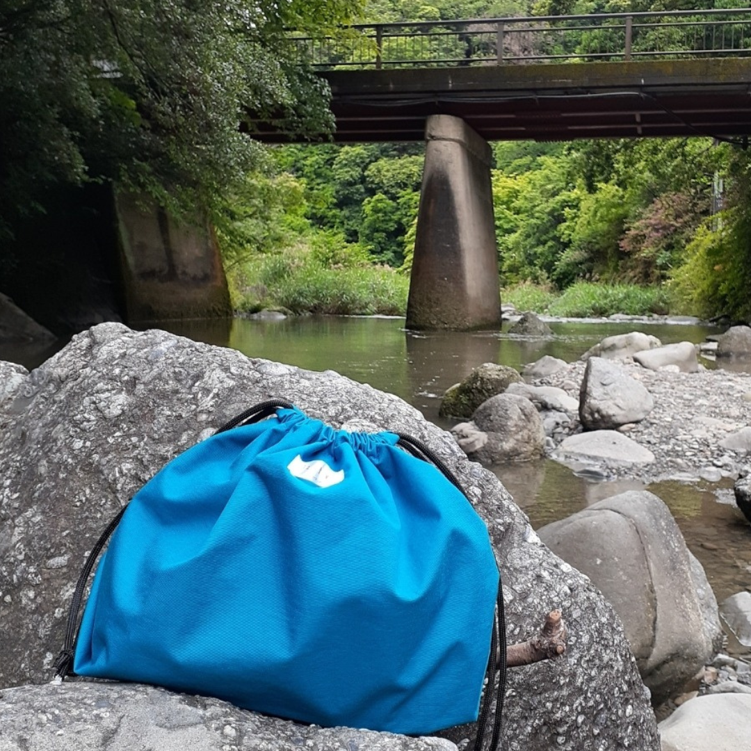 完全防水構造の巾着型防水バッグを中心に、 日常使いからアウトドア、水遊び、旅行など、 さまざまなシーンで活躍するバッグ・ポーチを制作しています。 濡れたものをそのまま入れられ、 洗って繰り返し使えるため、 使い捨てのビニール袋を減らす選択肢としてもご提案しています。 「かわいく、備える」をテーマに、 日常の延長線上に防災がある フェーズフリーの考え方を取り入れた作品です。