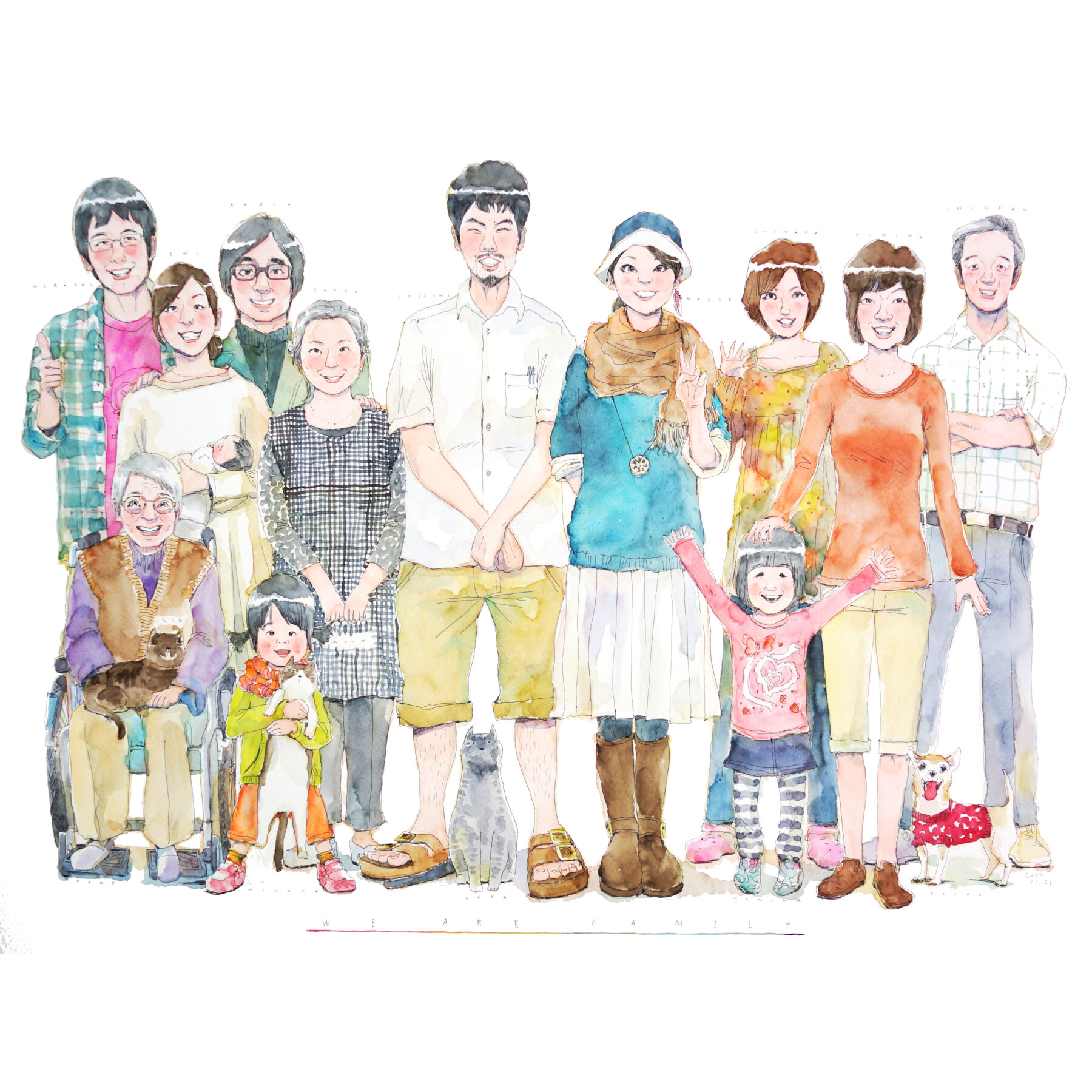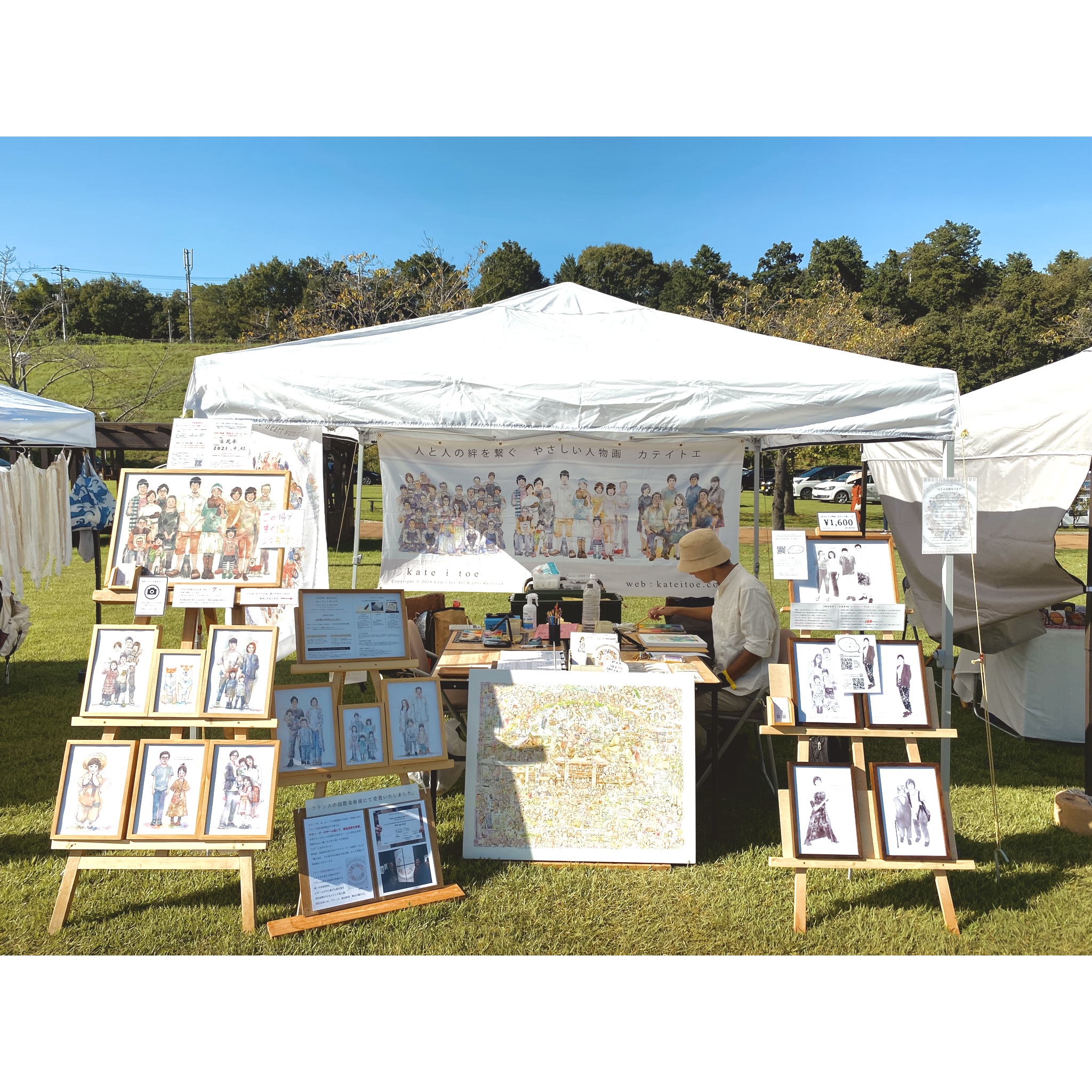 2014年の活動当初より、”人と人の絆をつなぐ”ことや、"ご家族のお守りとなる絵をご提供すること"を活動理念として現在まで活動して参りました。 私たちの人物画は、皆様の身近な人への愛を受け取り、作家のフィルターに通し、その愛をわかりやすく描いているようなイメージです。 カテイトエの人物画を見た方々が更に愛の循環を起こし、世界がやさしく平和になるよう、祈りを込めて制作しています。