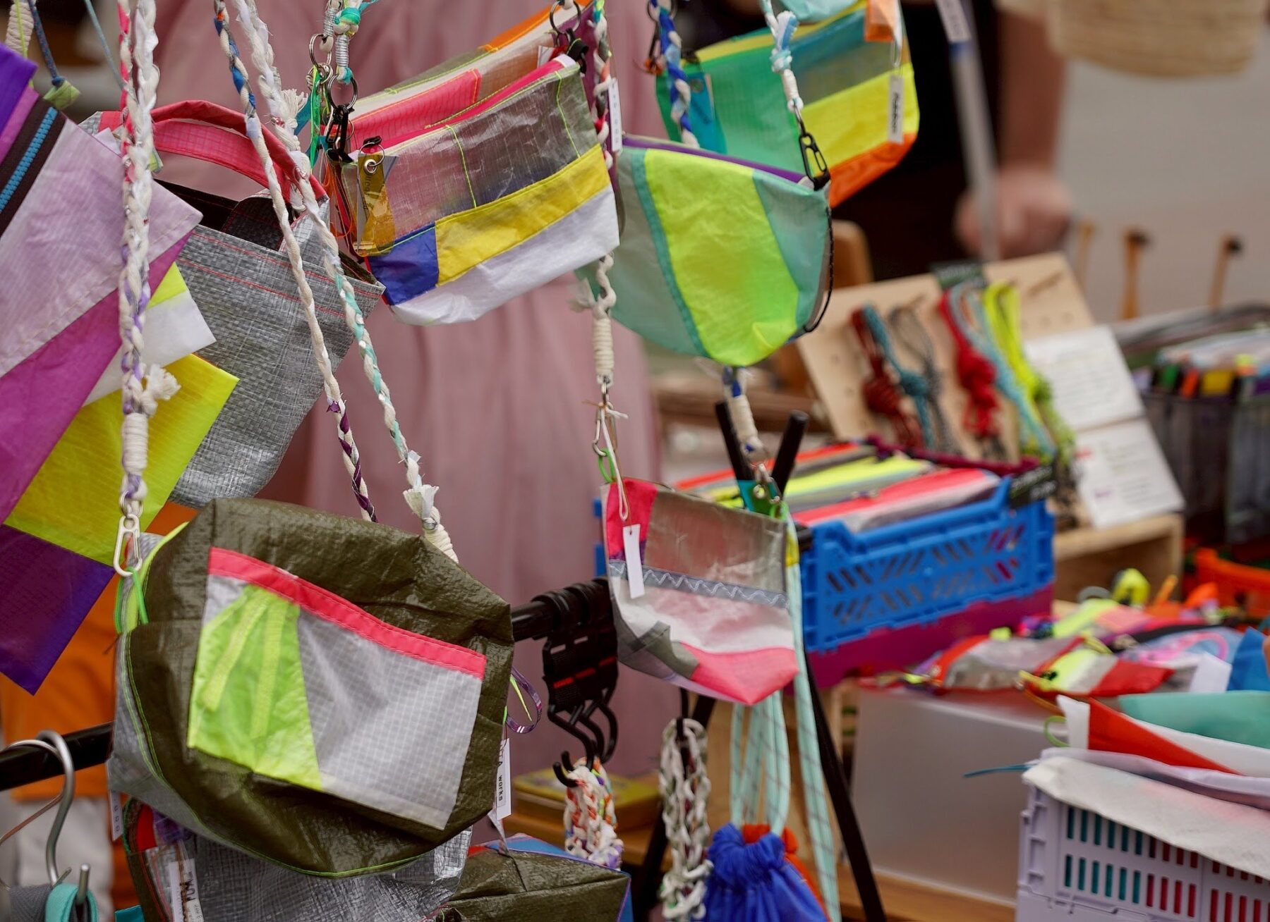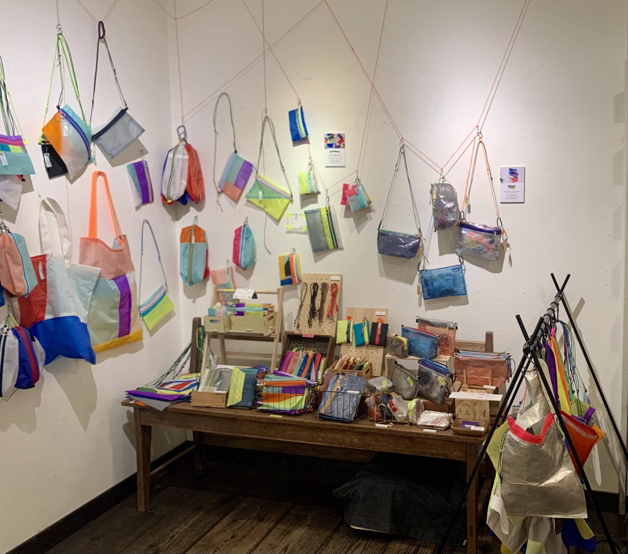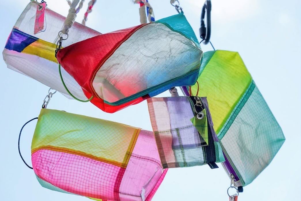 使い終わったパラグライダーやアウトドア製品の生地を使用したサコッシュやポーチ、エコバッグなど。