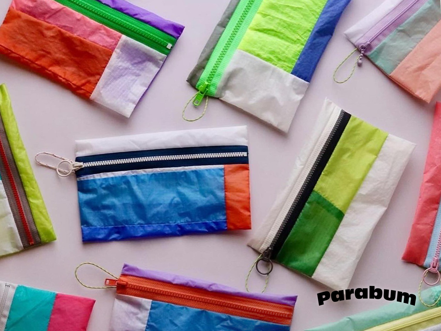 パラグライダー生地はカラフルで乾きやすく、持っているのを忘れるほどの軽さ。 また、DCFは防水性に優れ、使い込むほどにやわらかく味わい深い表情に。 それぞれの機能性と可愛さを、 是非手にとって確かめてみてください。 持っていてすこし気分があがるような ものづくりができたらと思っています。 アップサイクルのアイディアをお持ちでしたら、 お互いに情報交換して今後の創作活動に繋げていきましょう。